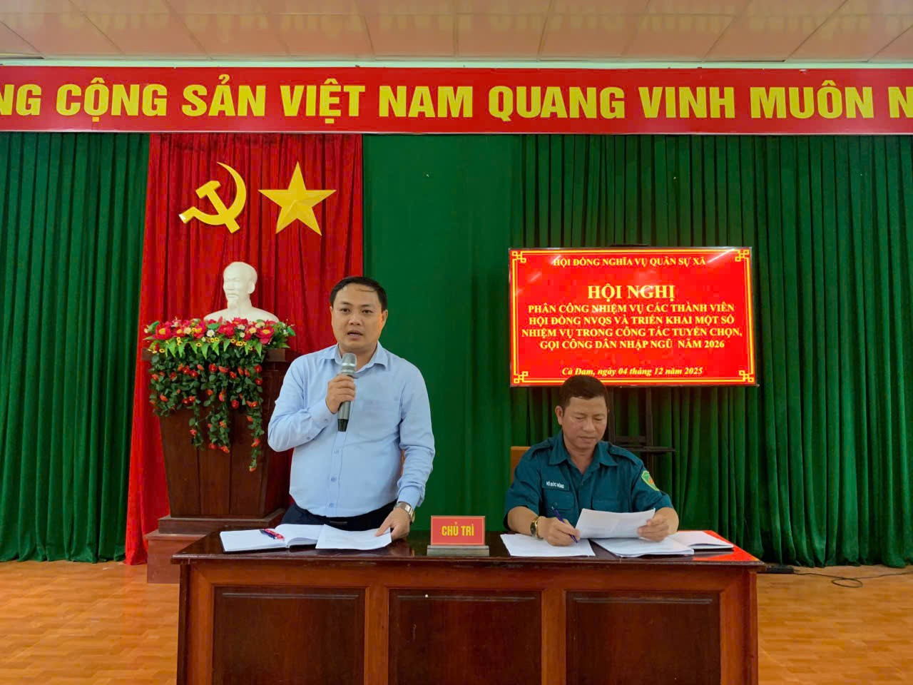 Chiều 04/12/2025, Hội đồng Nghĩa vụ quân sự (NVQS) xã Cà Đam tổ chức Hội nghị triển khai nhiệm vụ tuyển chọn và gọi công dân nhập ngũ năm 2026, đồng thời báo cáo kết quả trao Quyết định gọi công dân khám tuyển NVQS.